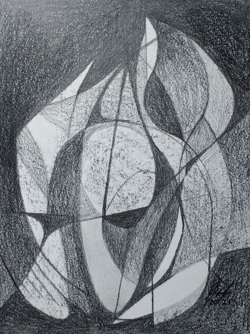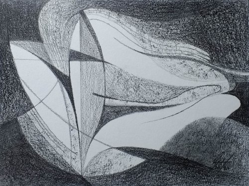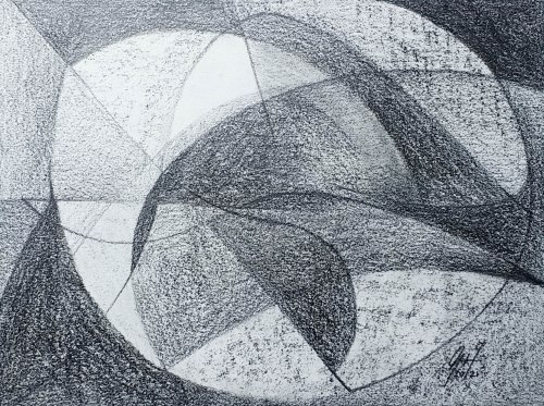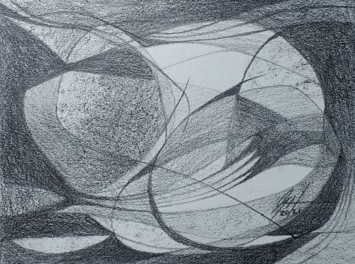 Following a change of art studio, and getting myself settled in, I wanted to ‘get back to basics’ with my abstract art and produce something new. This drawing is called ‘Movement though a space’.