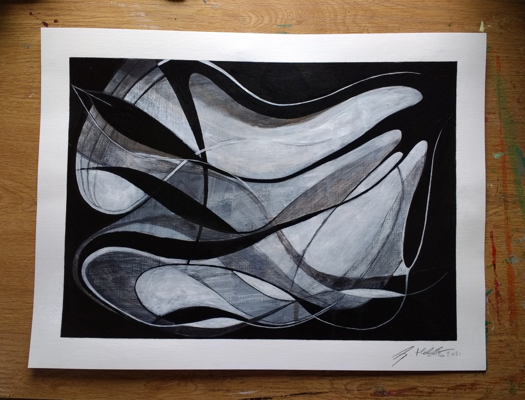 What was nice about this process was the ability to start off with automatic drawing and not knowing and trying not to think about what the final piece would eventually look like. I often do quite a bit of preparatory work before any painting and without this it felt more free. The hardest part for me was finishing the painting without over working it.