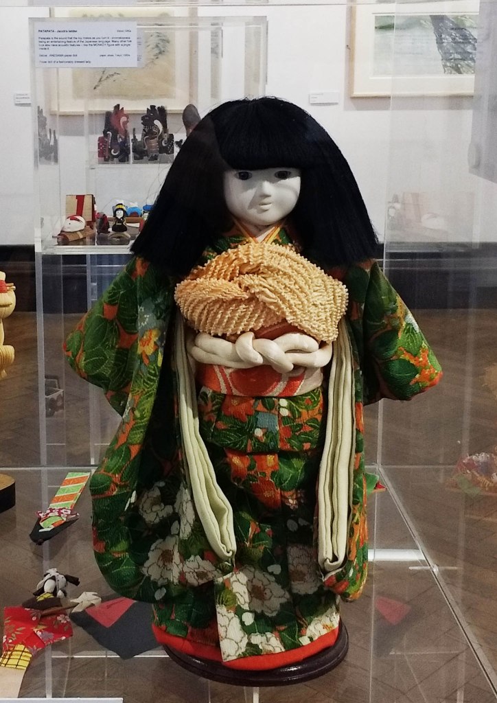I visited the ‘Reflections of Japan in East Yorkshire’ exhibition at the Treasure House Museum and Beverley Art Gallery in Beverley, East Yorkshire, last weekend. This exhibition, curated by Helena Cox, is part of the Japan Season of Culture in the United Kingdom and includes Jane Irisa’s fantastic collection of traditional Japanese toys alongside Rebecca Cross’ traditional and vintage kimono, gifts from the Japanese Imperial Court, ‘souvenirs and good-luck charms,… video presentations by Japanese exchange students from the University of Hull and Ochanomizu University, Tokyo’, and Japanese inspired traditional woodblock and lino prints of landscapes by Laura Boswell (East Riding Culture & Leisure, 2021). It’s on between 16th October 2021 to the 29th January 2022 at Beverley Art Gallery, Treasure House, Champney Road, Beverley HU17 8HE. Entry is free and there is no need to book.