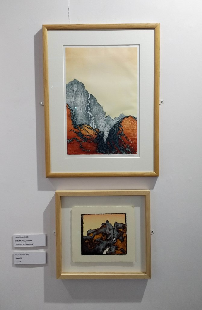 There was also a selection of printmaker Laura Boswell‘s recent linocut, woodblock and traditional Japanese woodblock prints. She has attended printmaking residencies in Japan to study traditional Japanese woodblock printing and this has greatly influenced her work. Her website is www.lauraboswell.co.uk