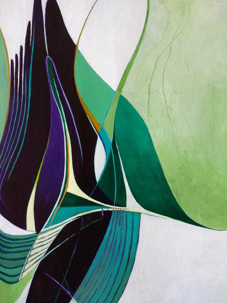 Continuing from last years’ drawings, ‘Movement through a Space’ and Movement in a Space’ (exhibited at Ferens Gallery Open Exhibition in early 2022), I decided to create a painting that depicted movement again, but a dive or submersion movement.