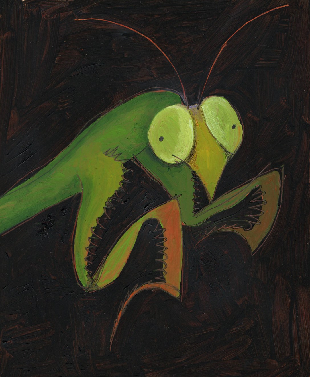 This blog shows my finished illustrations in mixed media (Oils and pencil) that came from a rough contour sketch of a praying manta character in a sketchbook that I drew years ago
